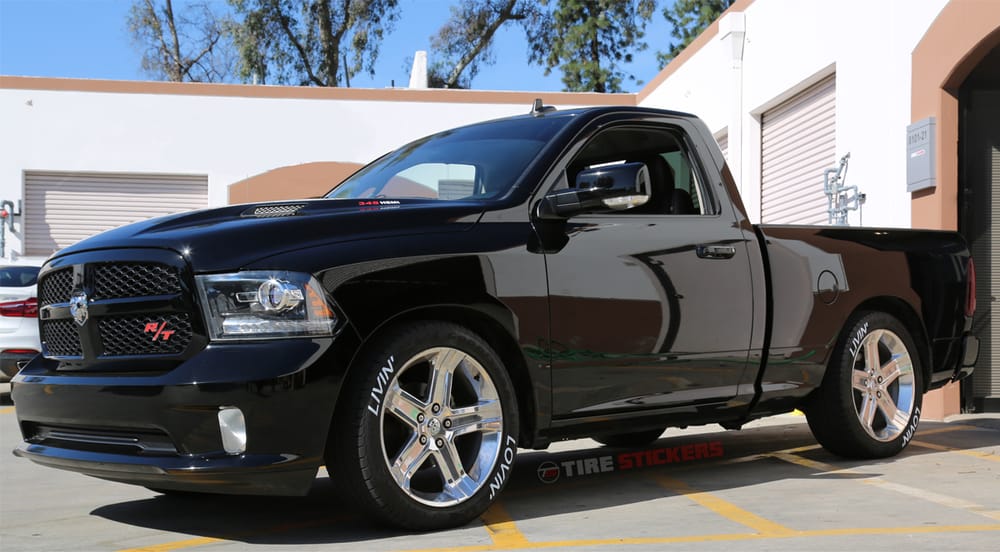 Customize the text on the top and the bottom to create the ultimate rolling graphic-double the space and character count! Each phrase can be up to 12 characters long and every kit will include 4 of each word/phrase (2 per tire).